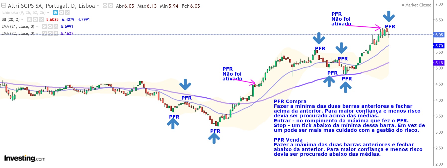 A entrada curta seria 1 cêntimo abaixo da mínima do PFR, ou seja, a 6.12!